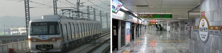 安平(アンピョン)駅まで14駅を韓国初の無人交通システムで結ぶ。