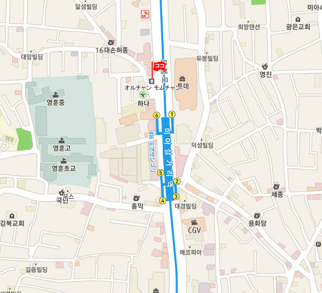 ソウル特別市 江北区(ガンブック)弥阿 5洞(ミアオドン)62-27番地、4階