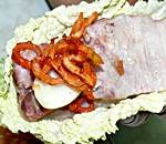 カルグクスと合わせて食べたいポッサム。新鮮な白菜に包んだり、キムチと一緒に食べたり、いろいろな楽しみ方ができます。 またおつまみ程度に軽く楽しみたいという方には白菜がついてないお肉だけの「ジェユク」がおすすめです。