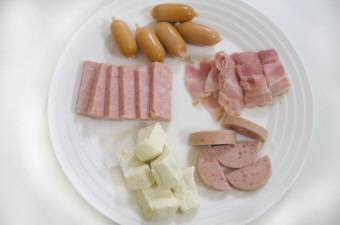 ▷ハム:250g ▷春菊:適量 ▷豆腐:適量