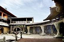 「太王四神記」のメインセット場は、2007年3月20日より撮影を始め、その年の7月より本格的に使用されたところ。ドラマの数多くのシーンに登場するメインセットです。また、オープニングの洞窟シーンで使用された金寧蛇窟があります。ここでは「太王四神記」の導入部分での幻想的なシーンに登場します。万丈窟(マンジャングル)は天然記念物に指定されている世界最長の溶岩洞窟です。 溶岩洞窟とは、火山の噴火のとき、土の中に深く隠れていた溶岩が火口から噴出し地表に流れてできたものを言います。万丈窟は、20~30万年前にコムンオルム(寄生火山)から噴出した溶岩が海岸線までの長い距離に達する過程で形成された典型的な溶岩洞窟です。ここには、70センチメートルにもなる溶岩石筍や溶岩チューブトンネルなど、様々な形のものがあります。