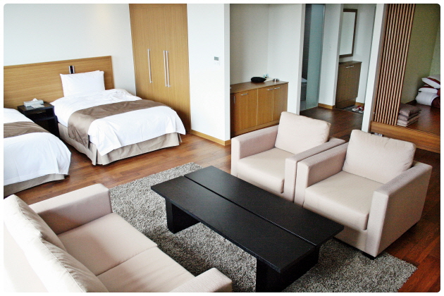 ホテルはゴルフ場内にあり、客室は緑豊かなゴルフコースに面しています。外国人観光客に対応するため、客室内は広さが十分に取られ、また床はオンドルとなっていますので、冬は温かく、夏は涼しく快適にお過ごし頂けます。付帯施設はイベントホール、カフェ、カラオケ、芝生庭園などが揃っています。レイクヒルズカントリークラブでゴルフを楽しまれる方はもちろん、観光で順天を訪れる方もぜひご利用ください。