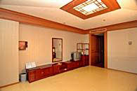 地下1階、地上8階のホテルの総客室数は262室。3階から8階までが客室フロアーになっています。2階にはフロントデスクのほか、ロビーラウンジとなっています。1階にはレストラン、コーヒーショップ、ビジネスセンターがあり、地下1階にはサウナがあります。客室タイプは全部で6タイプ。オンドル(8.5坪)、デラックスダブル(9.5坪)、デラックスツイン(9.5坪)、ジュニアスイート(15坪)、エグゼクティブスイート(18坪)、ロイヤルスイート(50坪)となっています。レイクサイド側の客室からは普門湖が一望できますので、素晴らしい景色をお楽しみください。