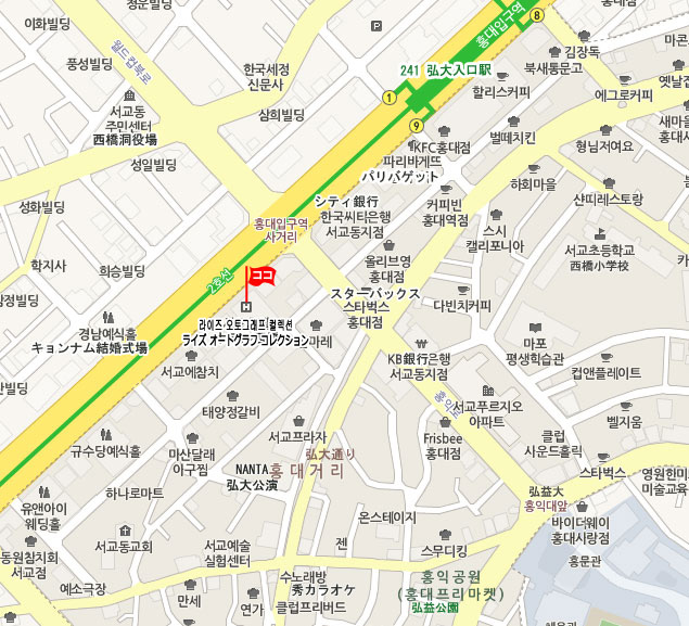 6002番バス(清涼里行き)に乗車し、西橋(ソギョ)ホテル・慶南ウェディングホール(中央車路) で下車。徒歩約2分。