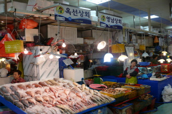 チャガルチ市場は1950年代から南浦洞周辺に集まりだした小さな露天の集まりが始まりだったと言われ、1970年に釜山市が海を埋め立て水産協同組合を設立しチャガルチ市場を開きました。 現在の建物は2006年に新しく建てられたビルで、以前のゴチャゴチャして薄暗かった雰囲気を取り払い、観光客にとっても買い物しやすく生まれ変わりました。