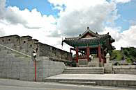 水原華城は18世紀末に李氏朝鮮第22代国王・正祖の命により造られた。華城行宮という王の別邸を中心に、全長5.7キロの万里の長城のような城郭と、その要所要所に門、砲台、やぐら、兵士の休憩所、軍事指揮所、訓練所などを東西南北に整然と組み込まれている。1794年より1796年まで2年を越える月日と37万人の労力が投入された。華城は実学を重視した正祖の理想都市であり、一時は華城への遷都も検討されたが、華城完成直後に正祖が死亡したため遷都は見送られた。城壁の長さは、5kmを越え城郭の築造に石材とレンガが使われている点が特徴的である。朝鮮古来の築城法に加え、石とレンガの併用といった西洋の近代的な建築技法を清(中国)から導入・活用し、当時の工事記録も現存されているところから建築史にも高い価値を誇るとして1997年にユネスコの世界文化遺産に登録された。現在急ピッチで復元作業がおこなわれている。城郭内部が市街地化されていて遺跡と人々の暮らしが密着している点も特徴的。華城には、城壁に沿って東の蒼龍門・西の華西門・南の八達門・北の長安門からなる4大門や砲台、やぐら、楼閣など41の建造物が現存している。 行宮(ヘングン)とは戦乱や養生など王が地方へ行く際に臨時に滞在する場所をいい、普段はその地方を管理する行政官が執務する官庁として使用されていた。華城行宮は朝鮮王朝第22代国王であった正祖が父の霊廟を参拝する際に宿泊した場所になります。正祖の参拝は12年間の間に13回にもなり、そのため他に建立された行宮に比べ規模も大きく政治的にも重要な意味を持つ行宮であった。華城行宮内でドラマ「チャングムの誓い」の撮影が行われたところがいくつもあり、その場所には写真とともにどのシーンで使われたか説明があるのでわかりやすい。また当時使われていた食器類や小物も展示されているので、朝鮮時代の暮らしも垣間見ることができる。