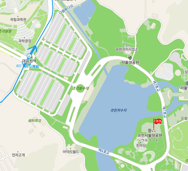現地 アクセス     地下鉄 4号線 大公園(デゴンウォン)駅 2番出口から正面玄関までは徒歩 約10分。