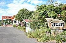 第2次世界大戦末期の1945年。日本軍は済州島を日本を守る最後の防衛線として軍事作戦を展開し、7万人余りの兵力を済州島に送り込みました。そして島内に多数の洞窟基地を建設していきました。ドラマ「チャングムの誓い」のラストシーンに出てくる有名な松岳山の洞窟もその中のひとつです。 現在洞窟内部が開放され、全長2キロのトンネルの内300メートルまで見学することができます。高さは1,6メートル~2メートル、幅は1,5メートルから3メートルの規模となっています。当時は洞窟内には10坪あまりの司令室、医務室、兵士の宿舎など多くの部屋が造営されていました。